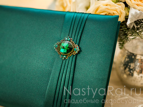 Материалы: изумрудный атлас, брошь из страз, декоративный изумруд