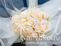 Нарядный бант из фатина и роз станет прекрасным украшением Вашего свадебного автомобиля.