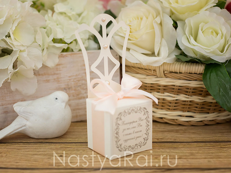 Оригинальная коробочка в форме стульчика из белого дизайнерского картона для конфет.