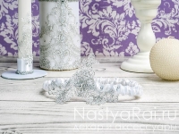Материалы: атлас, серебряная тесьма, кружево, стразы