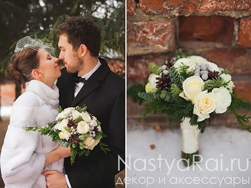 < Вернуться назадЗимний букет невесты из роз и эустомы