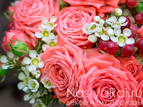 Состав: роза кустовая, ваксфлауэр, гиперикум,