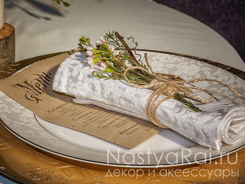 < Вернуться назадУкрашение салфетки из цветов "Рустик"
