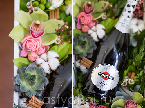 < Вернуться назадЯщик с живыми цветами и шампанским