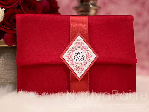 Подчеркните свою индивидуальность солидным приглашением в виде клатча из атласа благородного матового оттенка. Чехол-основа для каждого пригласительного шьется вручную, что делает каждый из них уникальным.