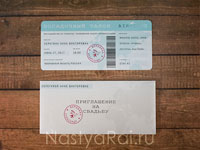 Тематическое приглашение в виде посадочного талона. На карточку нанесена перфорация, как на настоящем посадочном талоне. Конверт входит в стоимость.