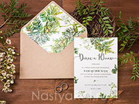 Приглашение на свадьбу "Лесная поляна" с темно-зеленым растительным узором.