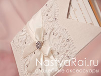 < Вернуться назадСвадебные пригласительные-кармашек с кружевом и стразами