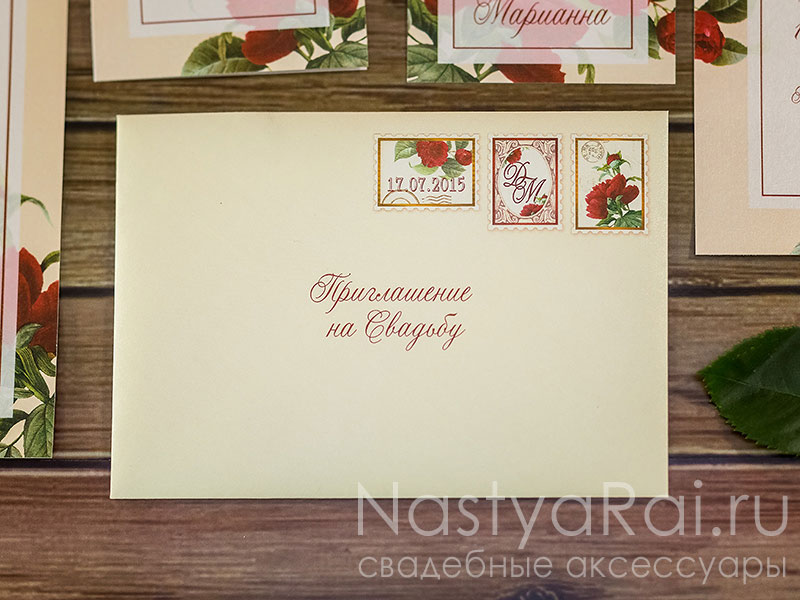 Персонализация на заказ (печать имен гостей, ваших инициалов и даты свадьбы на марках) - 200 руб. за тираж.