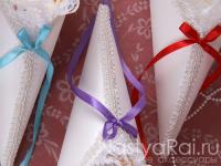 Фон – плотная дизайнерская бумага белого цвета, кружево – белое, тесьма – белая.