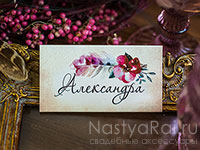 Рассадочная карточка из плотной дизайнерской бумаги с цветочным принтом и винтажным тонированием.