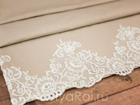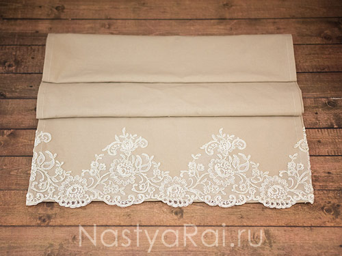 Рушник из темно-бежевого льна, декорирован кремовым кордовым кружевом.