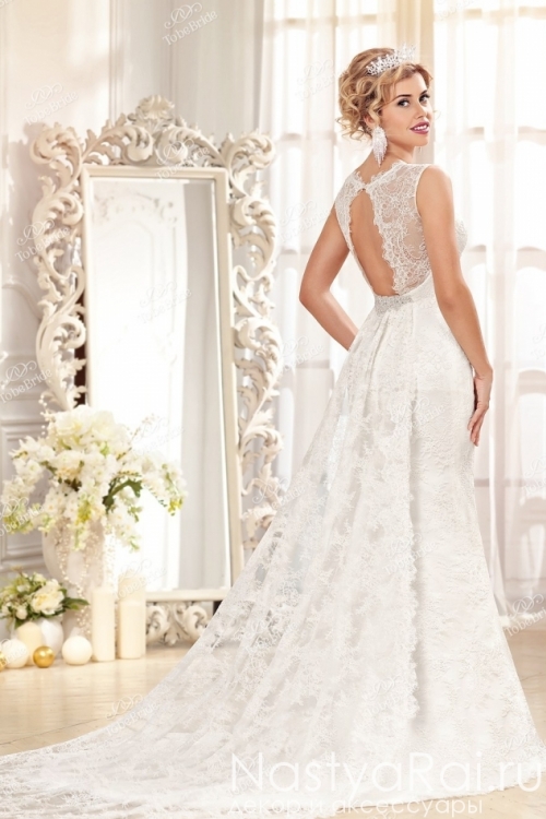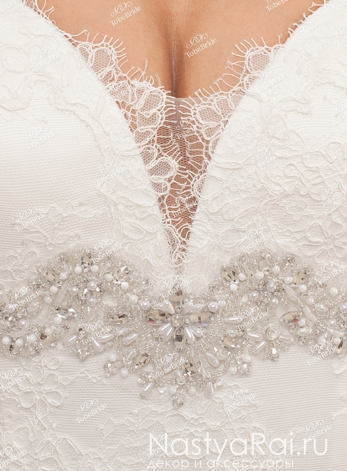 Взяв за основу силуэт классической «русалки», дизайнеры добавили к нему необычные декоративные элементы и длинный струящийся шлейф. В сочетании со сложной конструкцией лифа и нежным кружевом по подолу оно выглядит просто восхитительно!