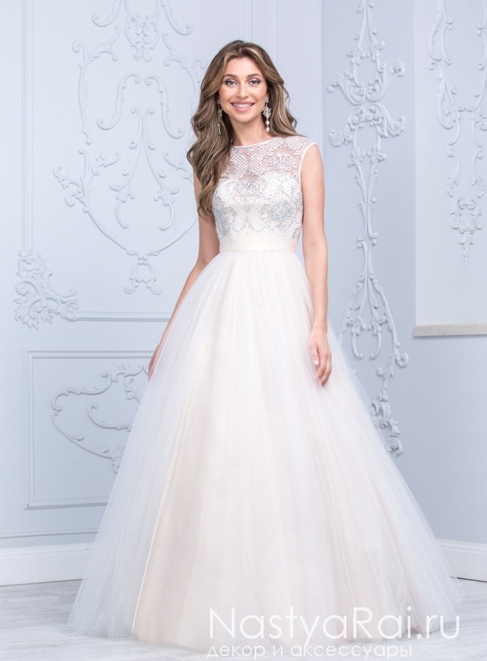 Шикарное вечернее платье с пышной юбкой из фатина. Верх платья из кружева расшитого стразами. Многослойная фатиновая юбка с вшитым подъюбником. Застегивается на молнию. Это платье подходит для выпускного бала, а также сделает вас самой красивой невестой в ваш знаменательный день!