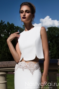 Элегантный свадебный костюм, состоящий из юбки с шлейфом и топа. Юбка застегивается на молнию, топ на пуговицы. Размер подберем на примерке!