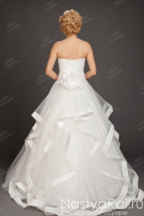 Эксклюзивное свадебное платье из новой коллекции To be Bride. Юбка А – силуэта, идеально облегающий и подчеркивающий фигуру корсет добавляет элегантности образу . А съемный шлейф с отстроченными воздушными лентами делает образ сказочным и романтичным. Это настоящее платье-преображение, платье-праздник, платье-сказка.